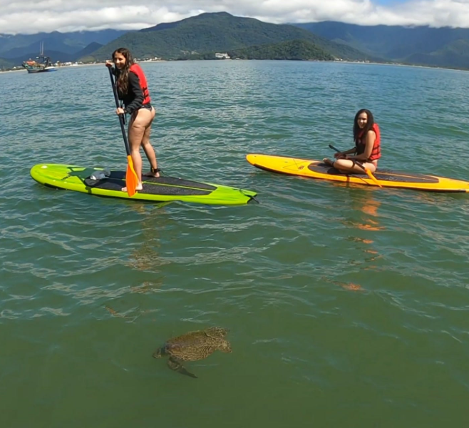 Venha mergulhar na beleza natural da Baía do Itaguá, em Ubatuba, e vivenciar um passeio de Stand Up Paddle único! Reme ao lado de tartarugas, peixes, aves e outros animais em seu habitat natural, rodeado pela exuberante Mata Atlântica e pela serra de Ubatuba.